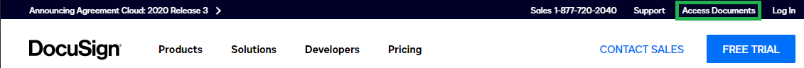Copy the multi-character security code at the bottom of the email, go to www.docusign.com, and click Access Documents.